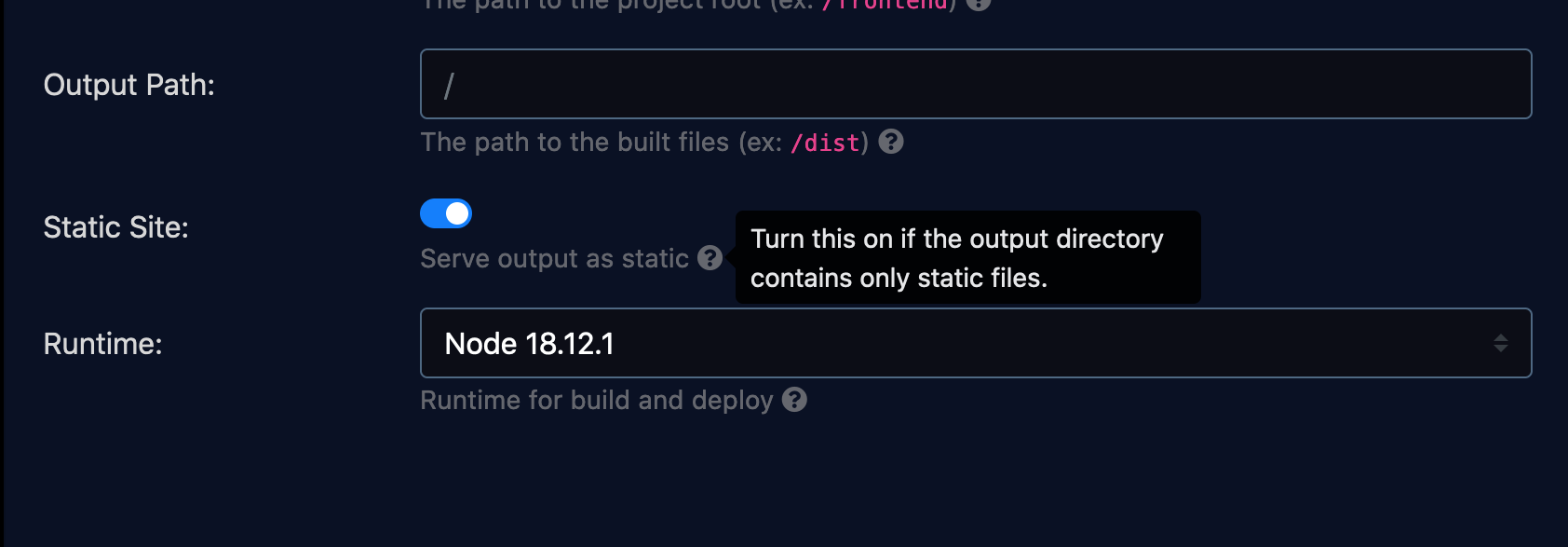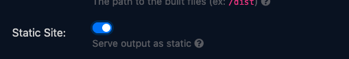 And just to hammer it home, if we head over to the dashboard, we can see the Static Site toggle is turned on there as well, nice: