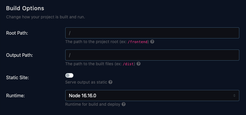 I'll have more on Build Options soon, but if you have questions in the meantime, come chat with us in Discord: discord.cyclic.sh.